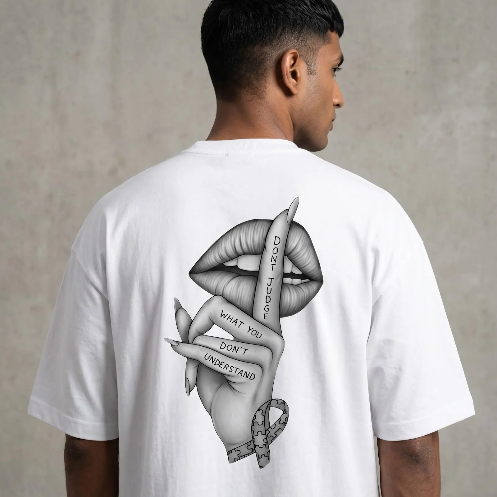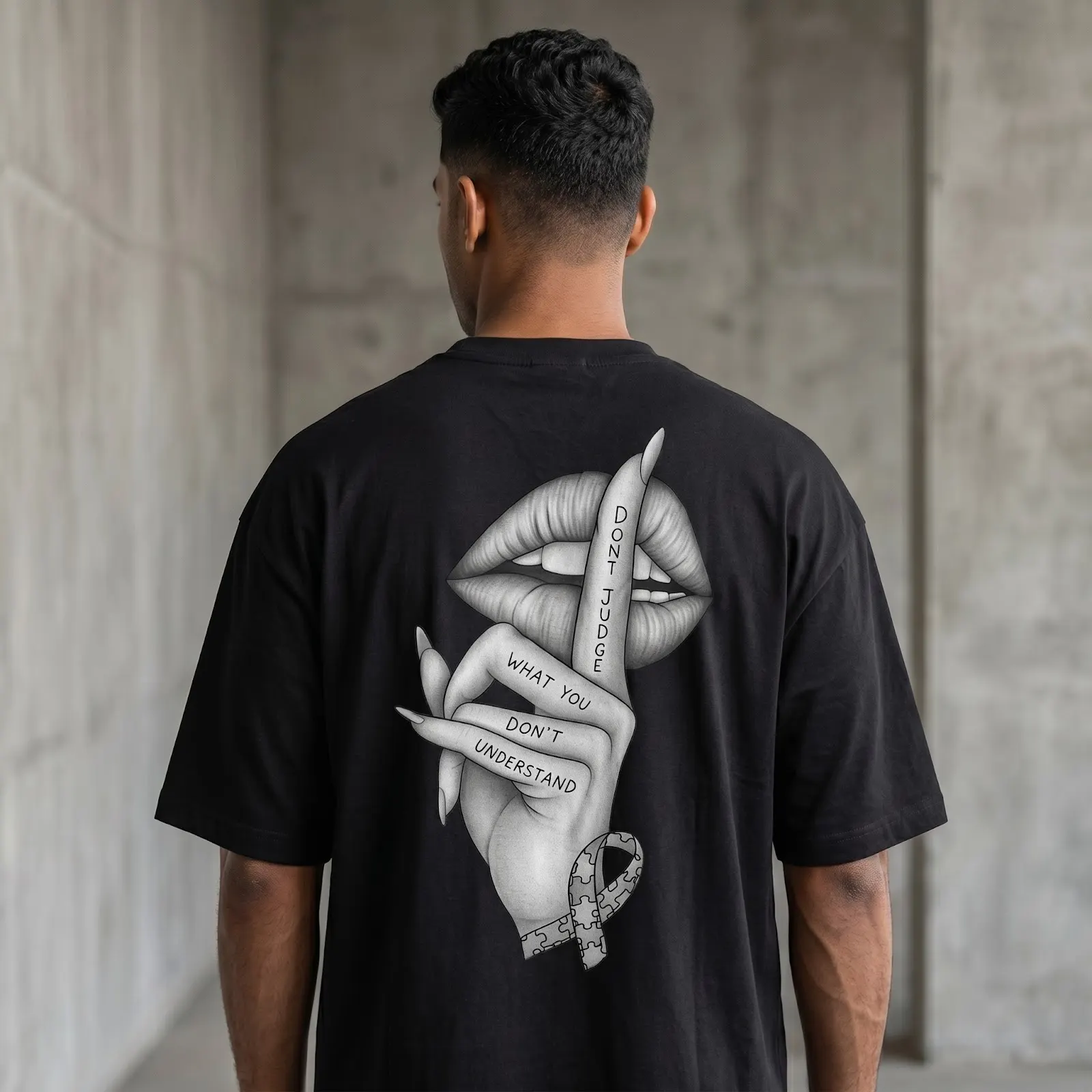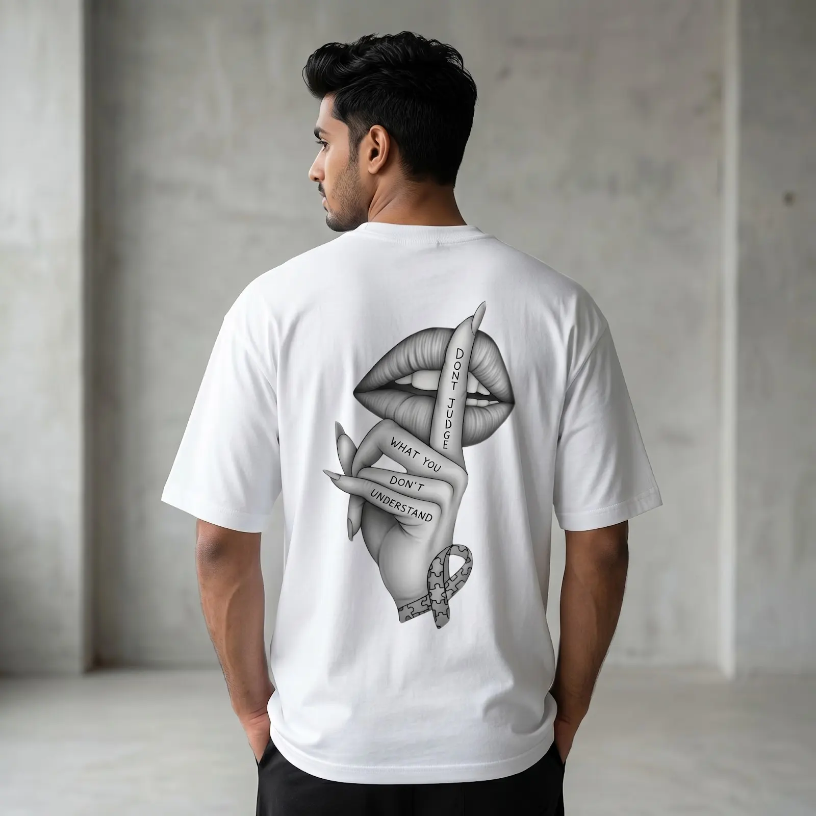 Featuring a striking monochrome graphic on the back, this T-shirt adds an artistic and expressive edge to your wardrobe. Pair it effortlessly with jeans, joggers, or shorts for a modern, urban look.Whether you’re heading out with friends or upgrading your everyday essentials, this oversized tee delivers the perfect blend of fashion and functionality.