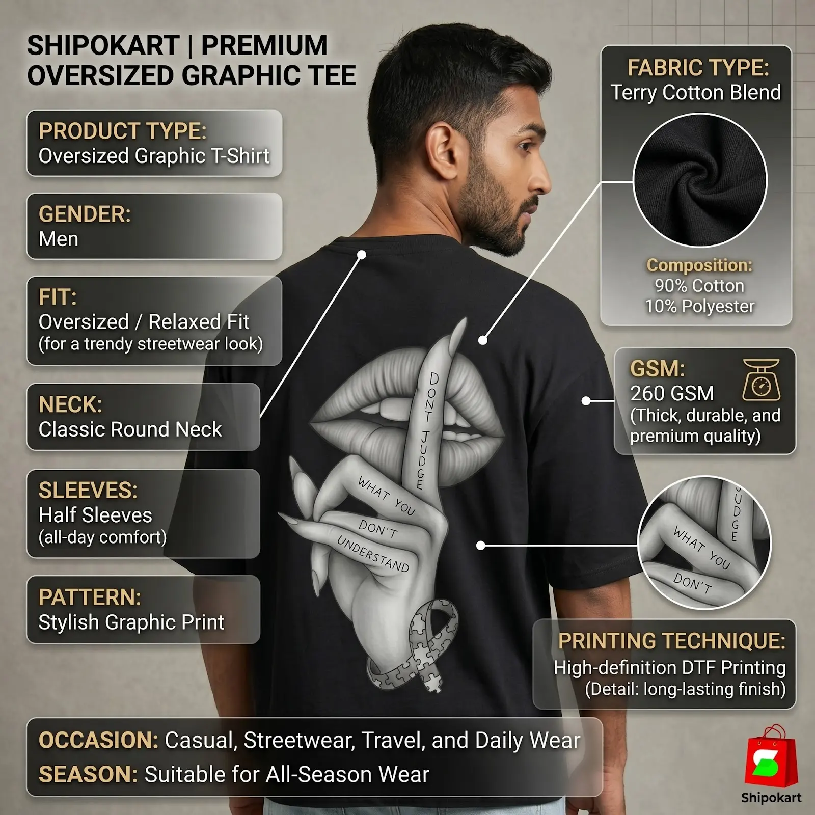 2. 📏 Oversized Fit: Relaxed and trendy silhouette for a modern streetwear look